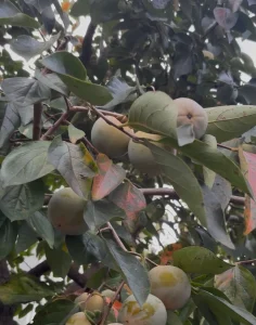 善了寺(こよりどうカフェ)の敷地内でも、入口のサルスベリの花は落ち、代わりに紫蘇の実や柿の実が色づき始めています。季節の移ろいを肌で感じられる穏やかな光景です。